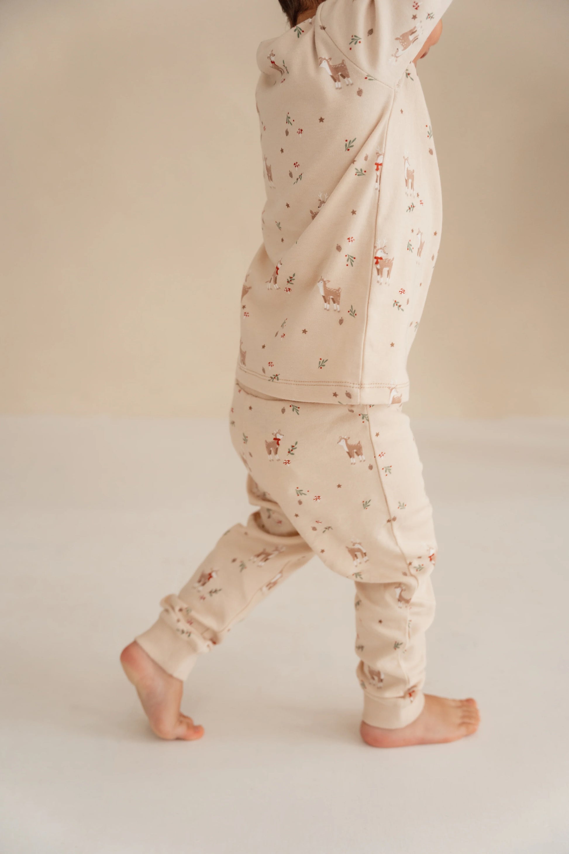 The Little Dutch cosy pyjamas are perfect for the night before Christmas. They're comfy, warm, and incredibly soft, crafted from certified organic cotton. With a sandy base adorned with wintry reindeer scenes, this two-piece set features long sleeves and legs for extra cosiness during the winter.