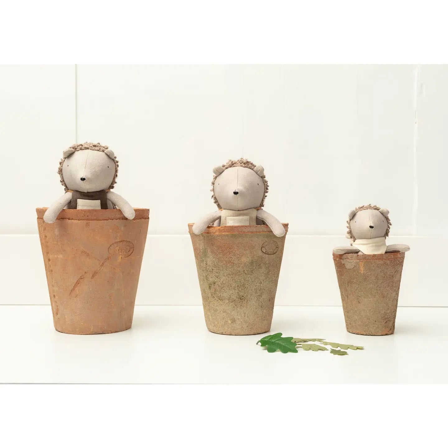 Introducing Poppet the baby hedgehog, the tiniest member of a charming family of shy hedgehogs who make their home at the bottom of the garden, nestled deep within the hedgerow. This adorable little critter is bashful and incredibly secretive, adding a sprinkle of magic and mystery to every playtime. Poppet's small size makes him perfect for tucking into pockets and school bags, ready to join in on all your adventures. Whether he's peeking out from the undergrowth or tagging along for secret garden escapades, this baby hedgehog brings an extra dose of charm and enchantment to any setting. Discover the hidden wonders of the garden with your new, cuddly companion, Poppet. Materials, care & size: * Size: 17 cm * 70% Cotton & 30% Linen * 100% Recycled polyester fill * Hand wash * Suitable for all ages * Complies with UK & European toy safety standards * Safety warning: Keep away from fire
